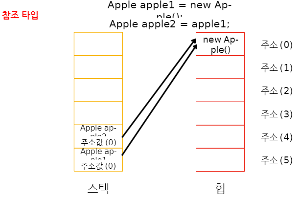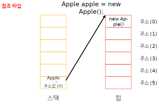 Apple apple = new Apple(); 같은 클래스 선언 할당 방식