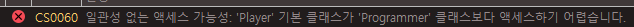 자꾸 클래스간의 상속이 안되고 일관성 없는 액세스 가능성