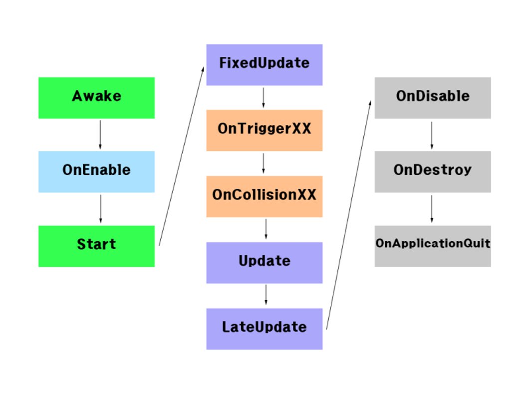 Unity 스크립트를 실행하면 사전에 지정한 순서대로 여러 개의 이벤트 함수가 실행됩니다. 이 페이지에서는 이러한 이벤트 함수를 소개하고 실행 시퀀스에 어떻게 포함되는지 설명합니다.